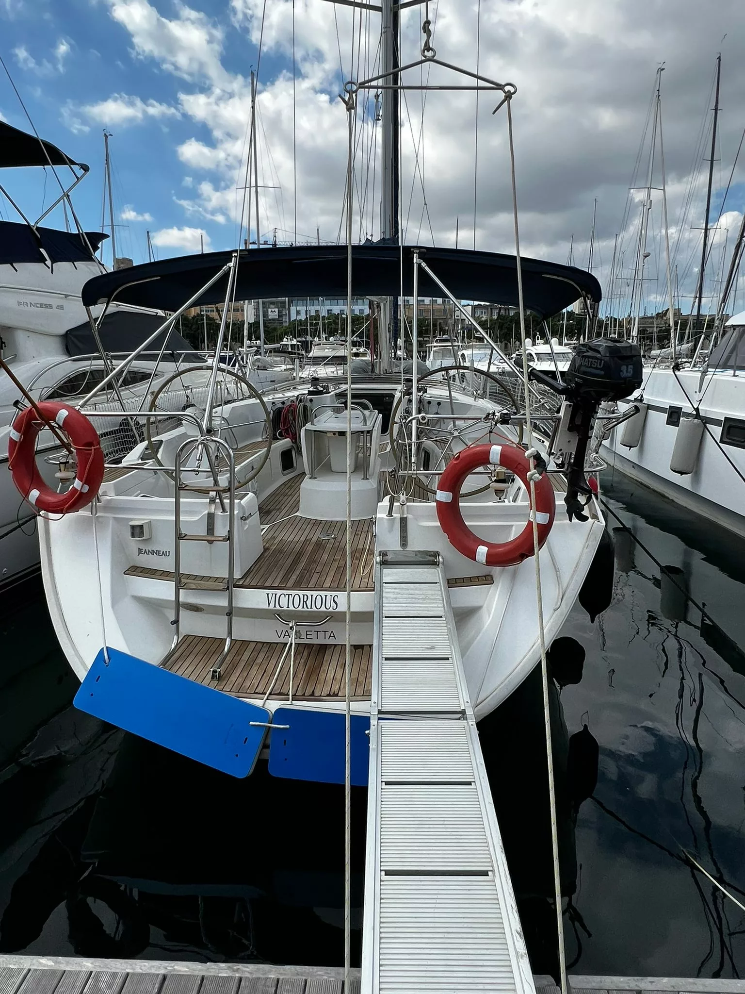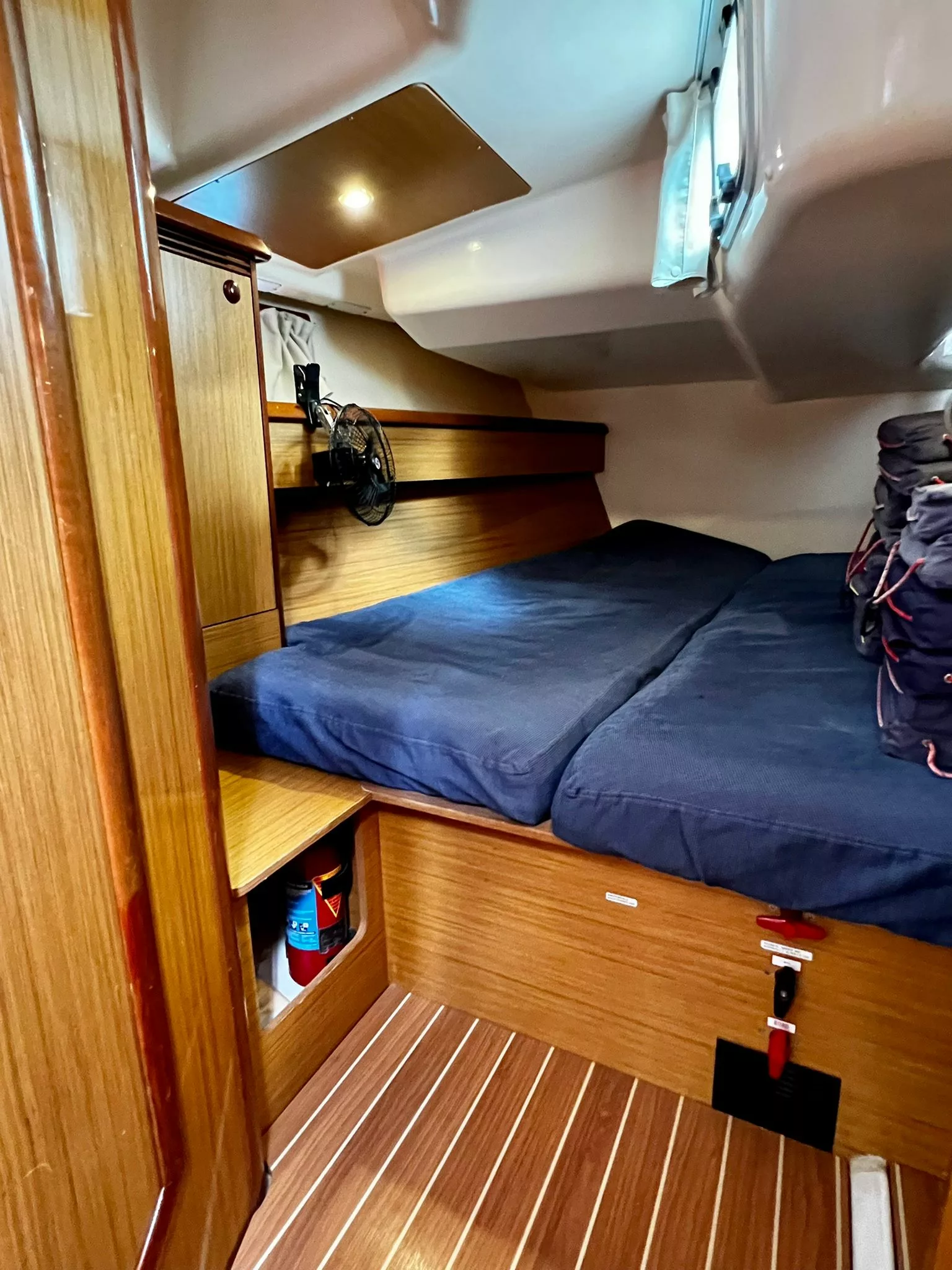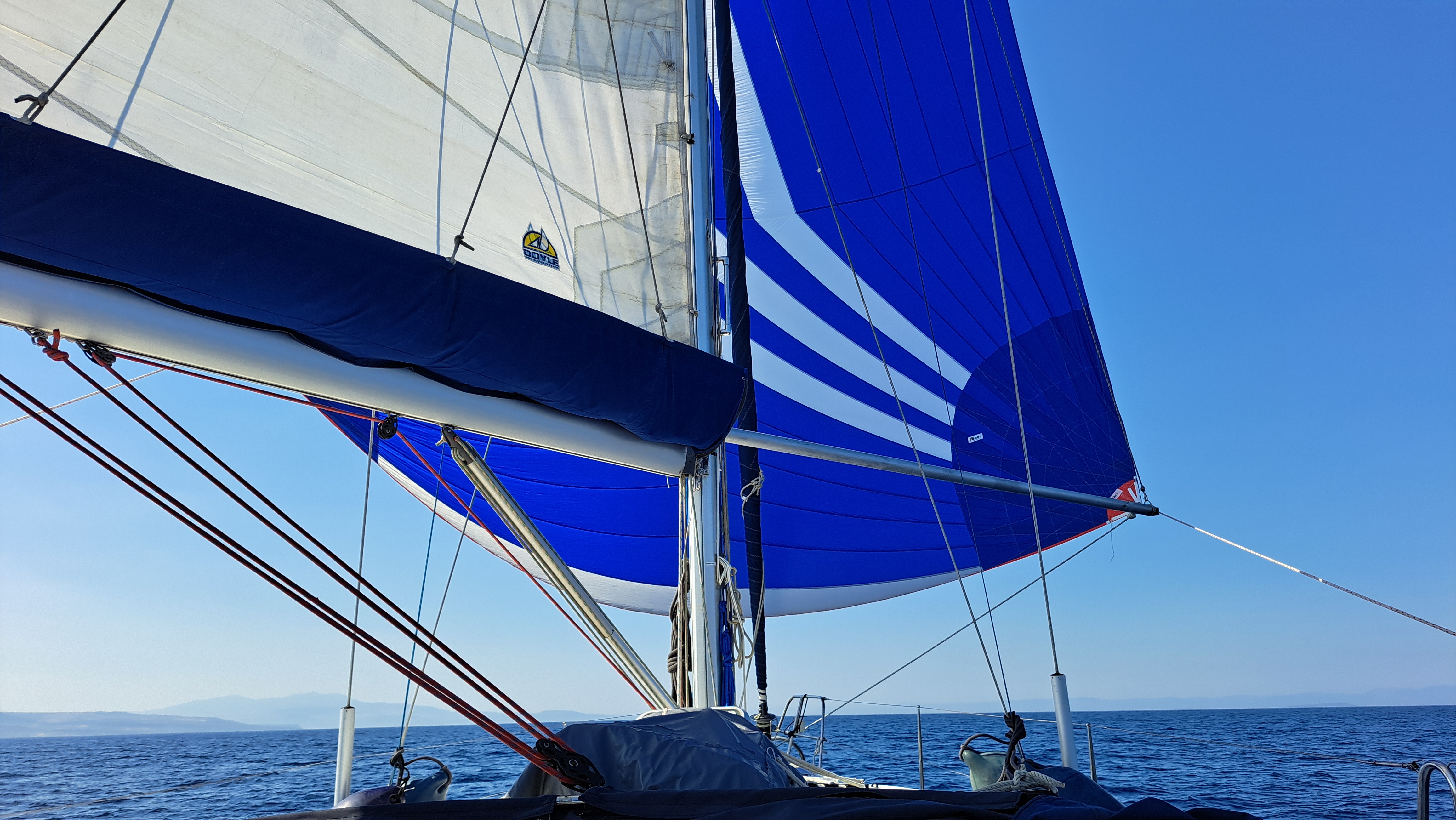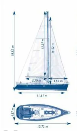 - Full battened main sail with 3 reefs and furling genoa.