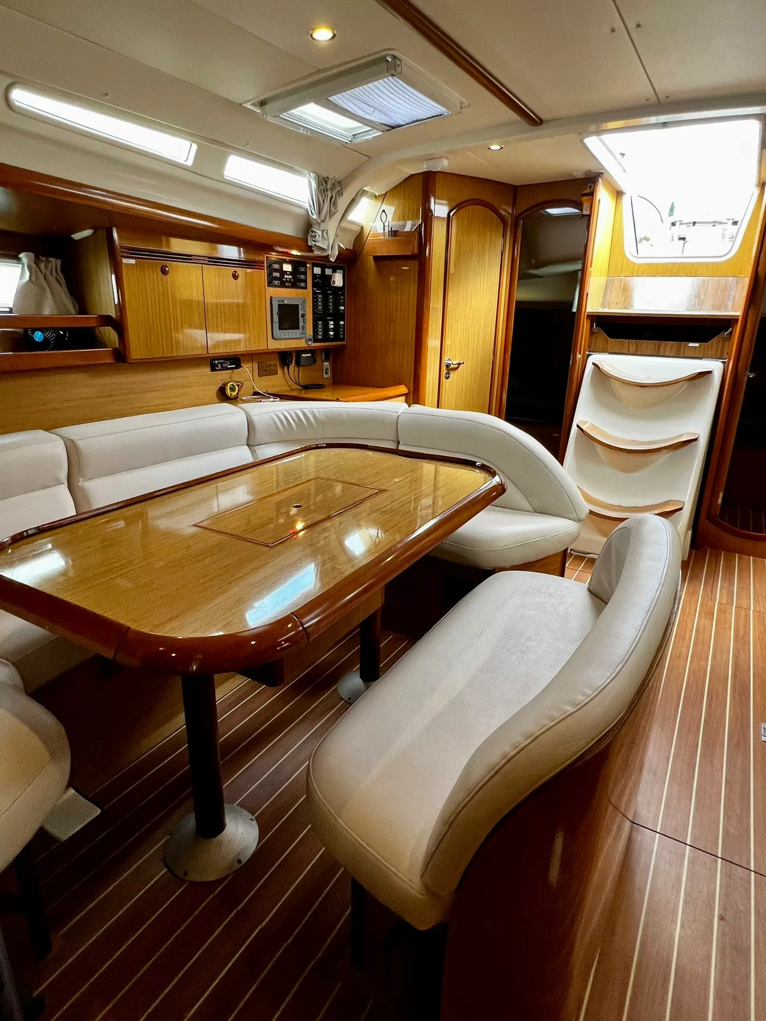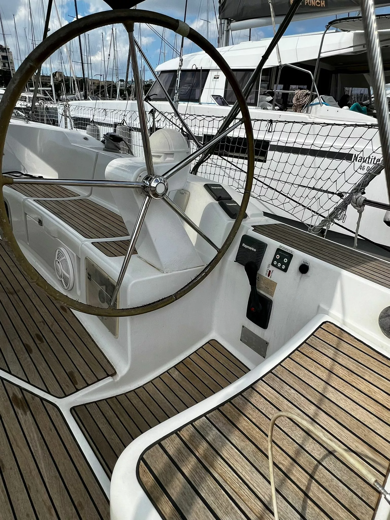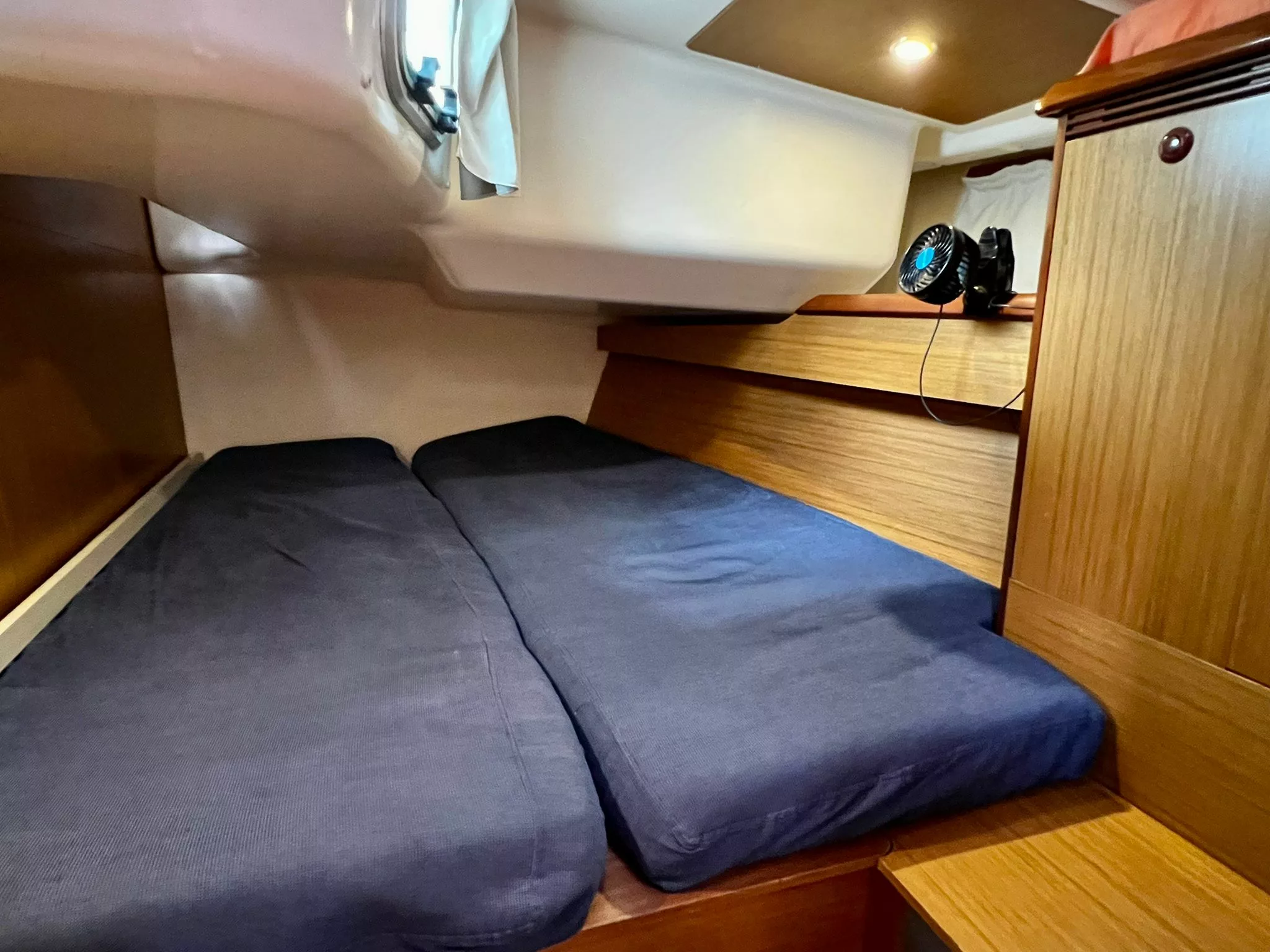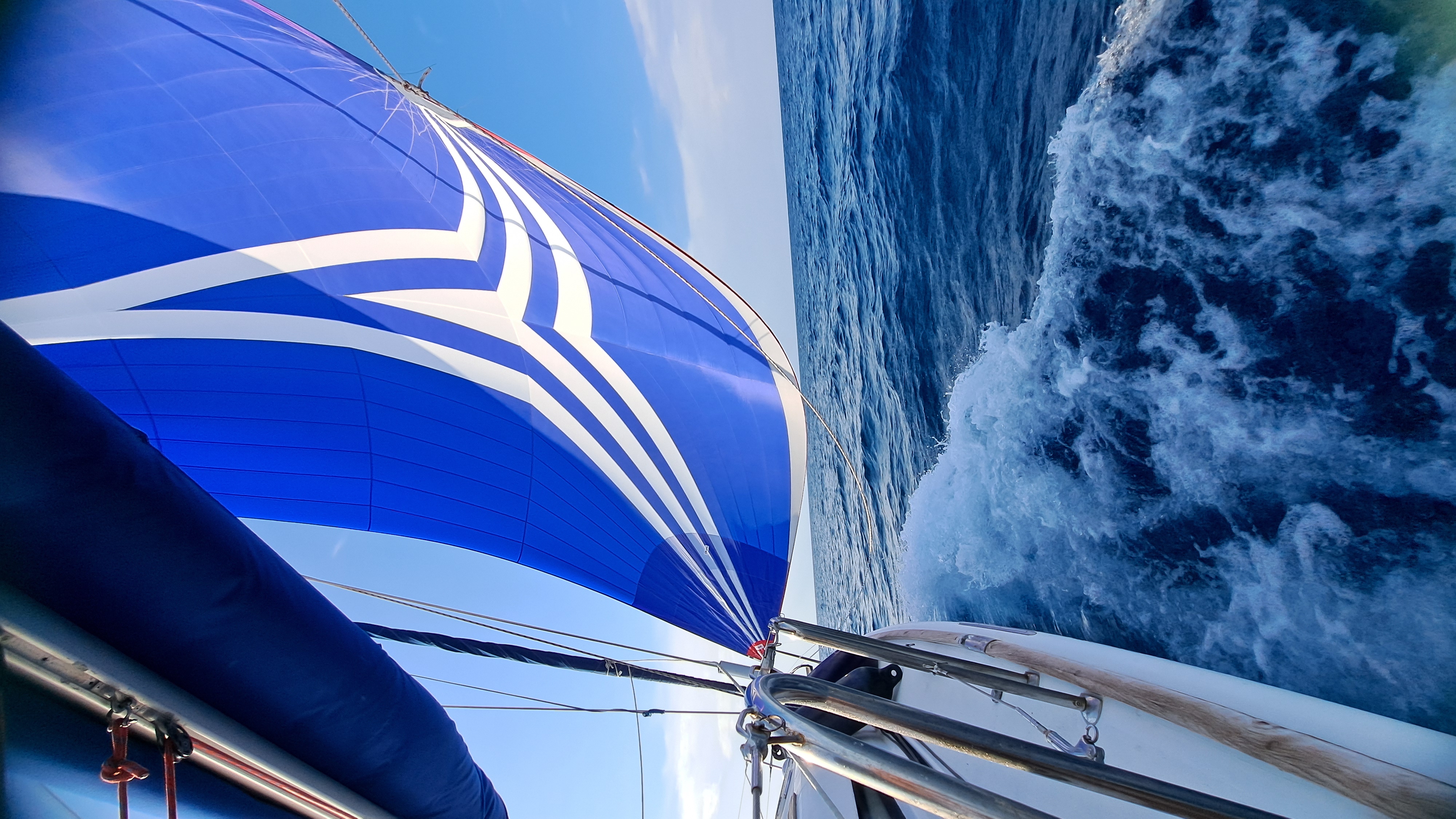 - Full battened main sail with 3 reefs and furling genoa.