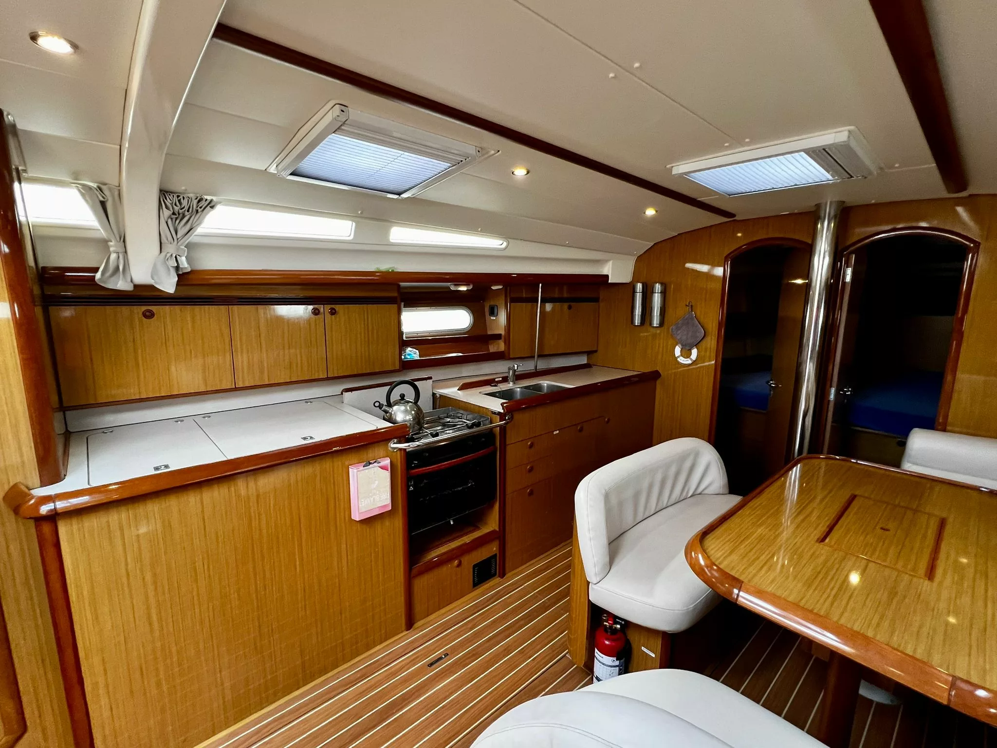 - Two aft and two forward cabins. The forward cabins can easily be converted to one extra large master cabin.